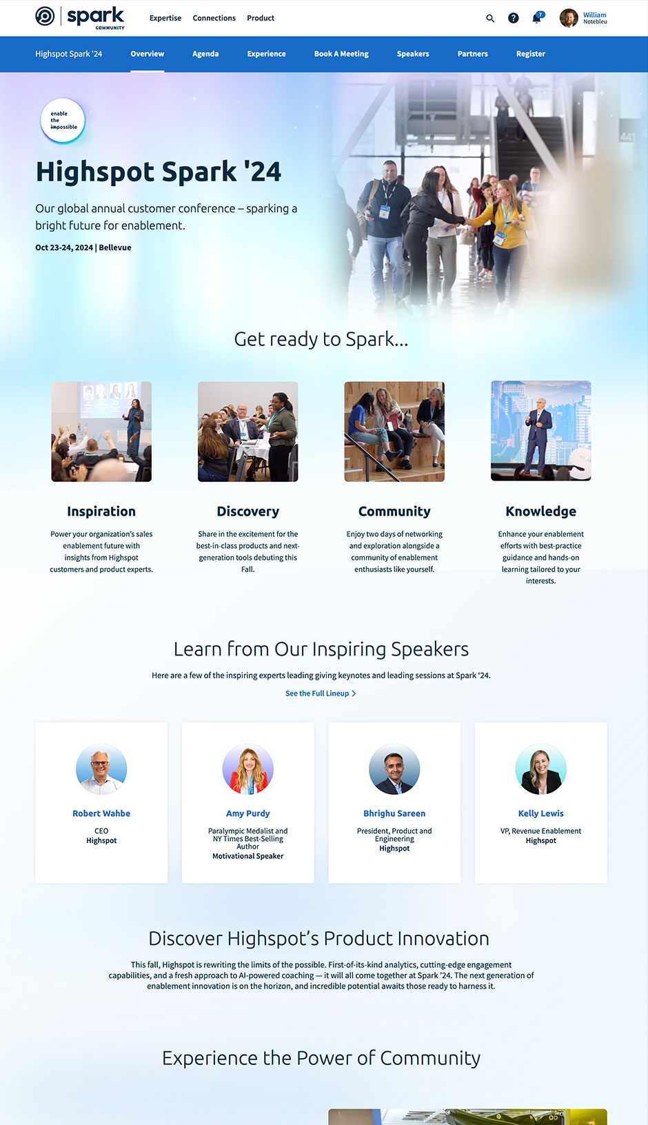 We built and maintain a multi-faceted community site for Highspot. The site incorporates many bespoke features to enhance its utility, including custom-designed community discussion boards, user-connection capabilities, real-time chat functionality, and virtual event hosting. Our platform integrates with the Salesforce API, Marketo API, Zendesk API, Amazon CloudSearch, and numerous other third-party tools to provide users with a rich and seamless experience. By leveraging these integrations, we enable robust data synchronization, enhanced customer support, advanced marketing automation, and powerful search capabilities designed to optimize user interactions and improve overall functionality.